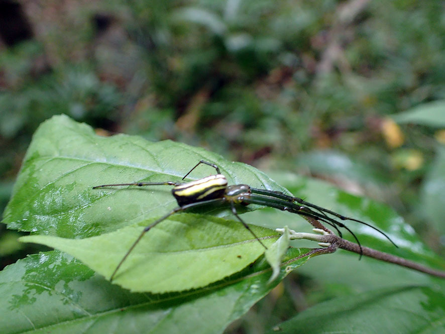 ☆チュウガタシロカネグモ アシナガグモ科 シロカネグモ属 水平円網