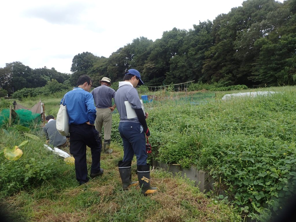 9/21東京パワーテクノロジーの方々が調査に入りました。7名。カナムグラを食べている虫を発見!