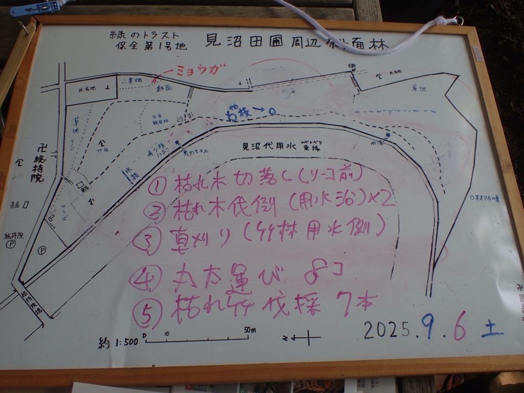 □作業 枯れ枝切り落とし(倉庫前) 枯れ木伐倒(用水沿い2本) 草刈り(竹林用水側) 丸太運び8個 枯れた竹伐採7本 希少種ゾーン(セイタカアワダチソウ、アカメガシワ、クワ、ダンドボロギク、ヒメムカシヨモギを除去)