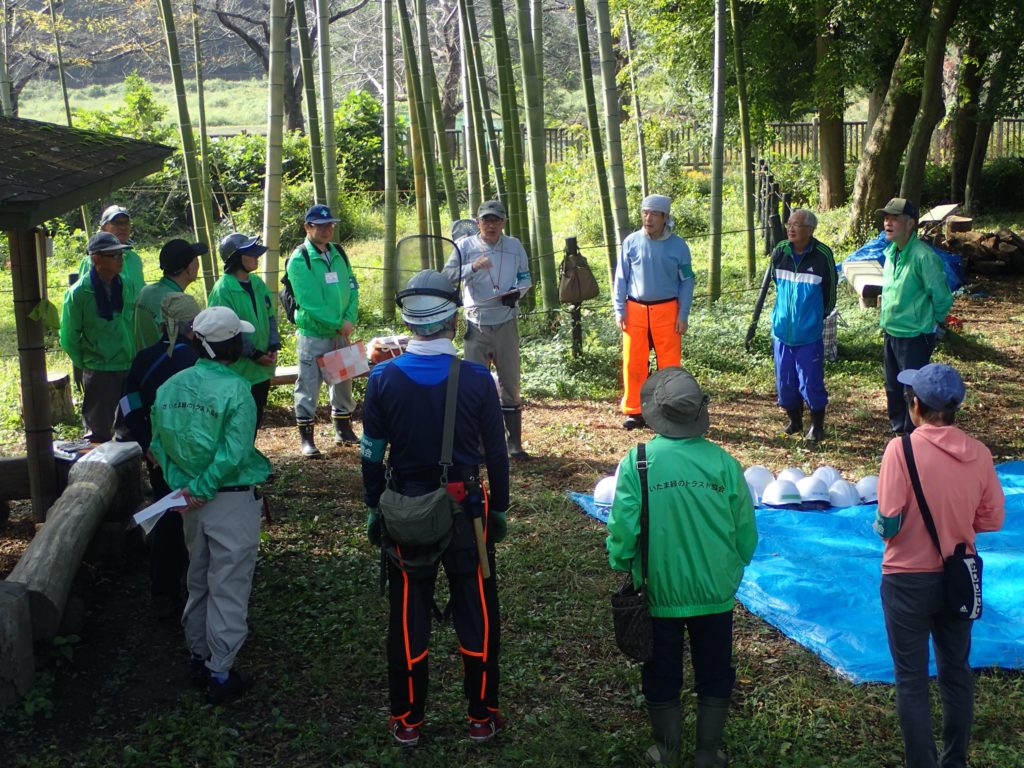 □参加 いなげや研修生24人 4人役員 スタッフ4人 埼玉県みどり自然課2人 事務局1人 ボランティア16人