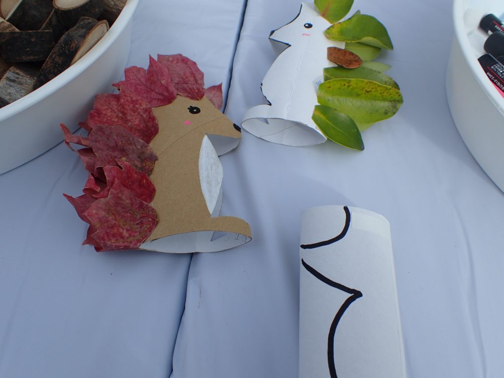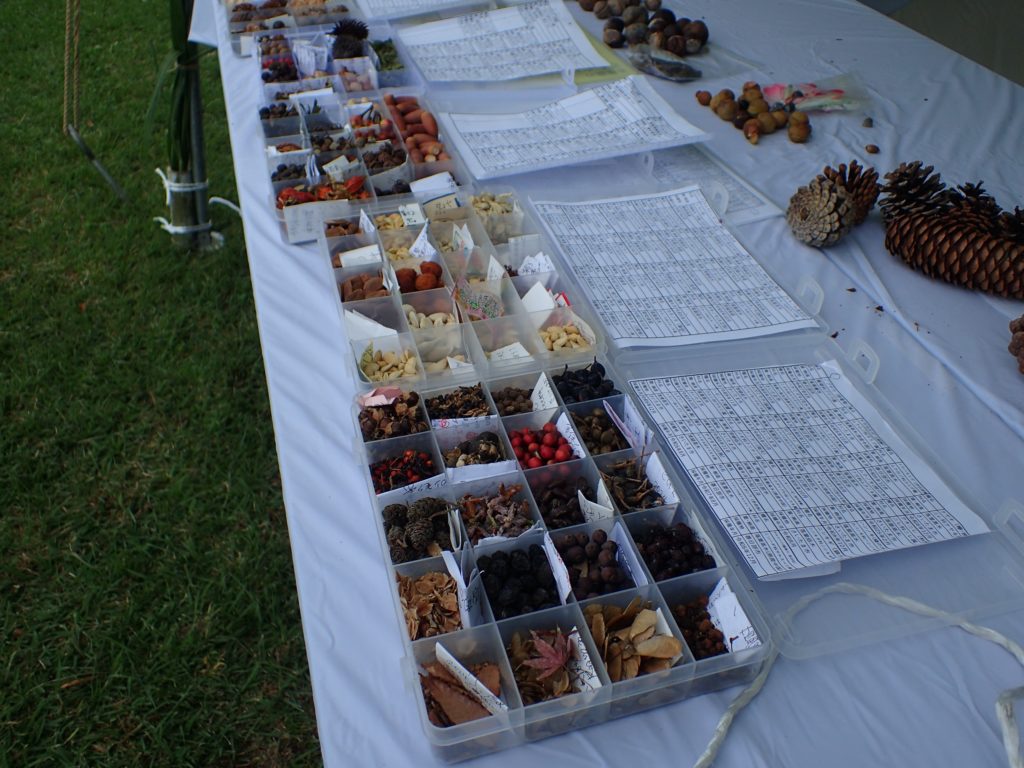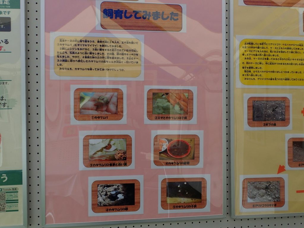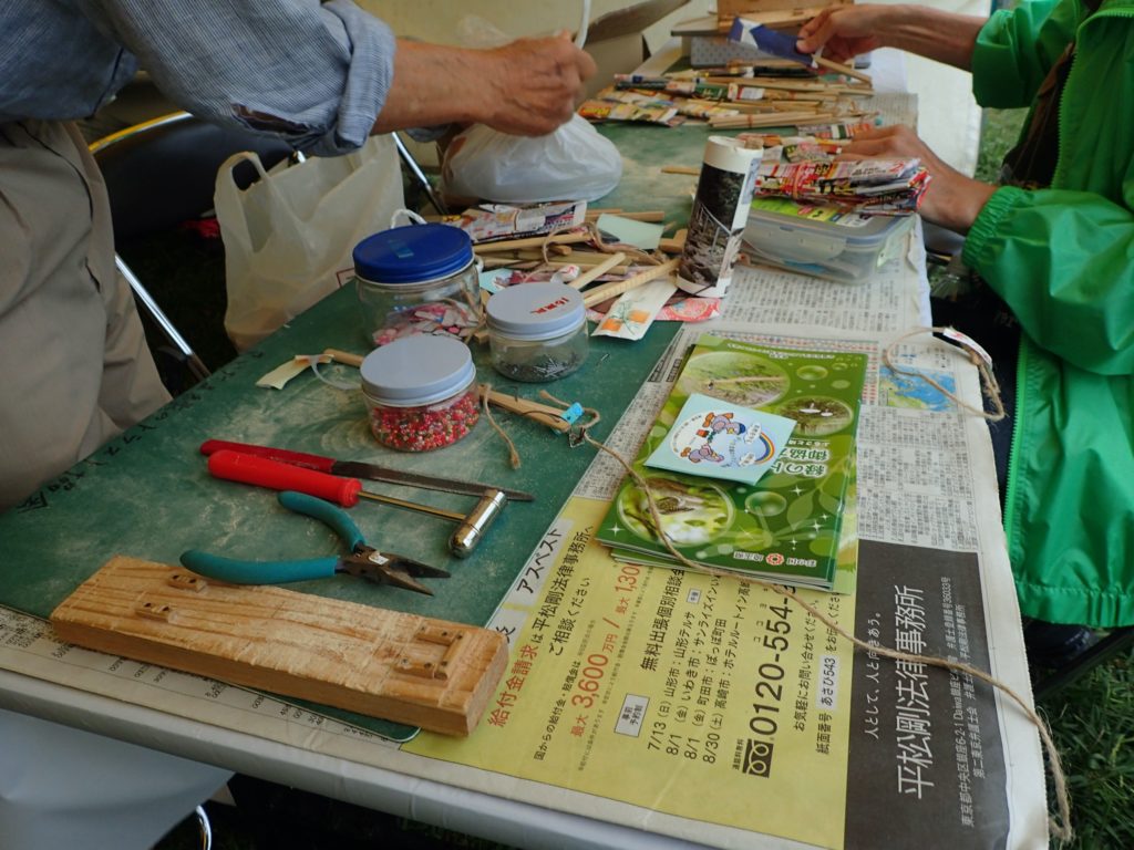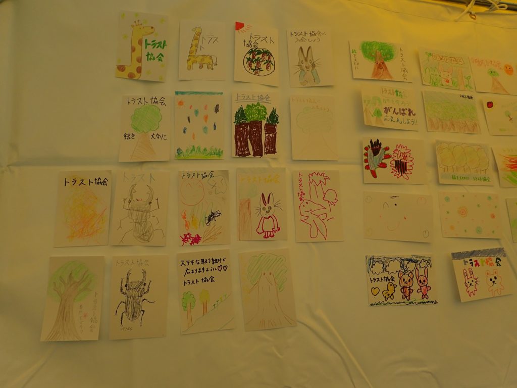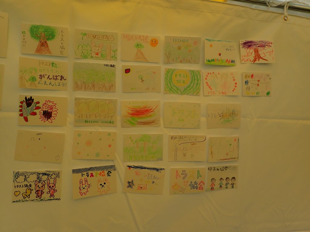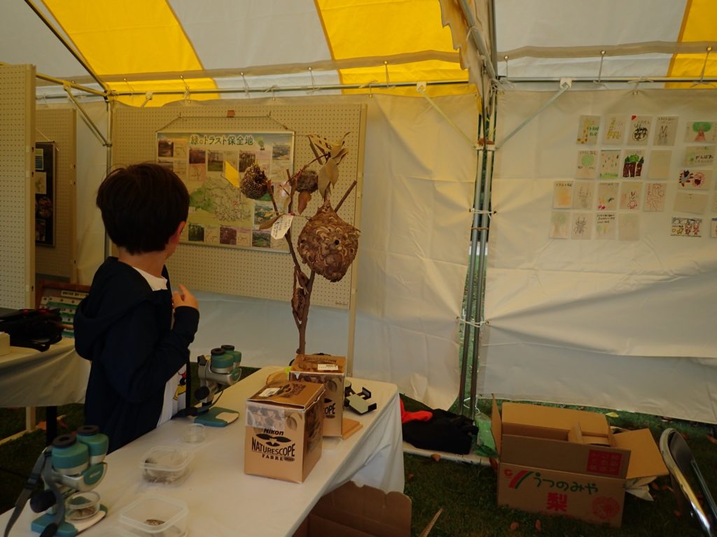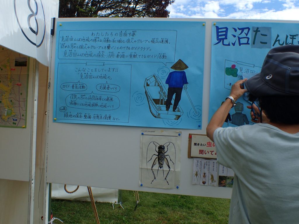 □出し物 号地紹介 漢字当てクイズ 鳥の名前当てクイズ バランストンボ 生態系輪投げ ガリガリトンボ メモフォルダー 木ゴマ パタパタ 実体顕微鏡 イラストを描いてボランティアをしよう(46作品が集まりました♫)