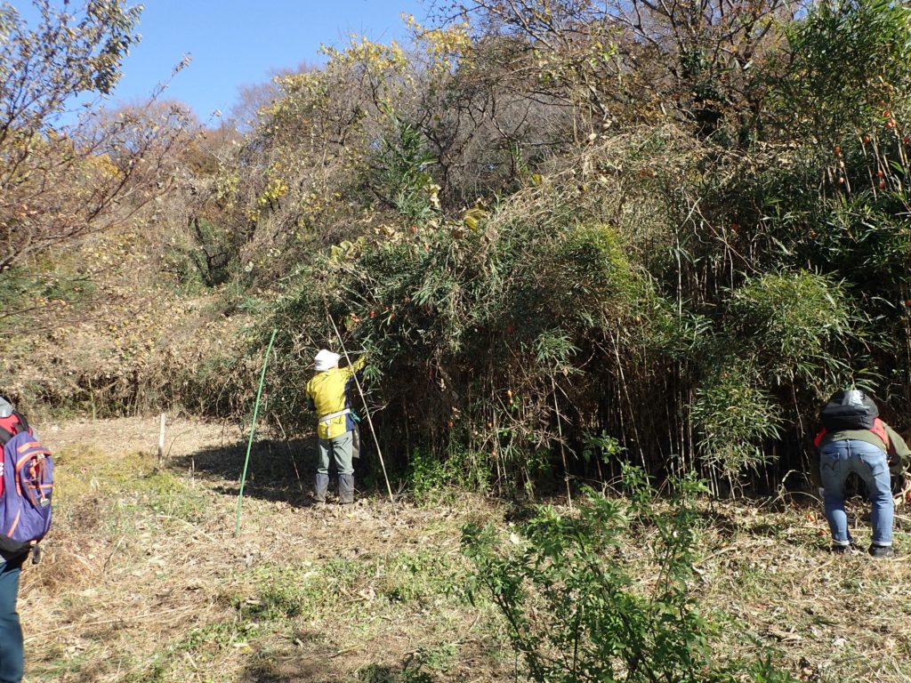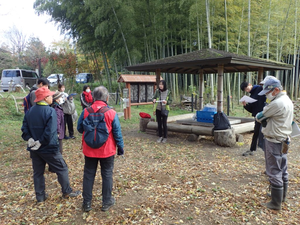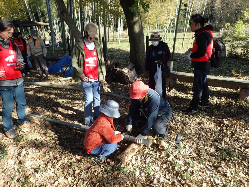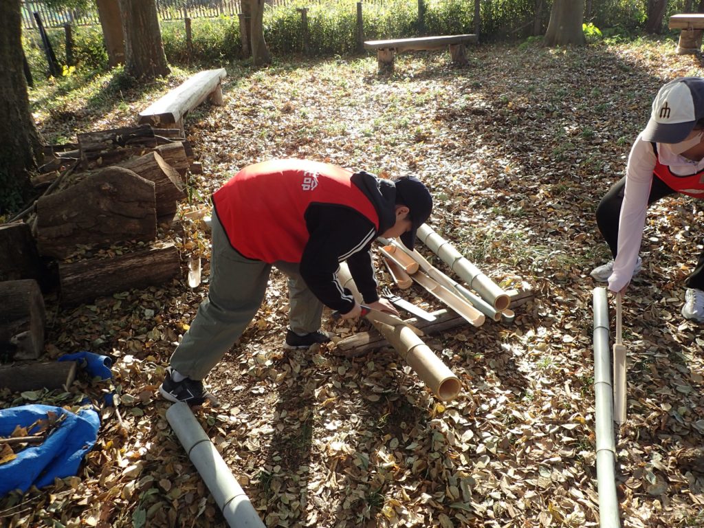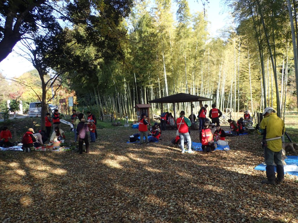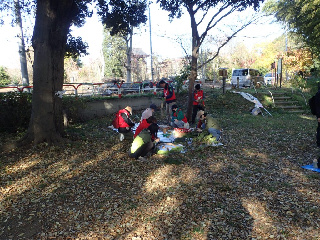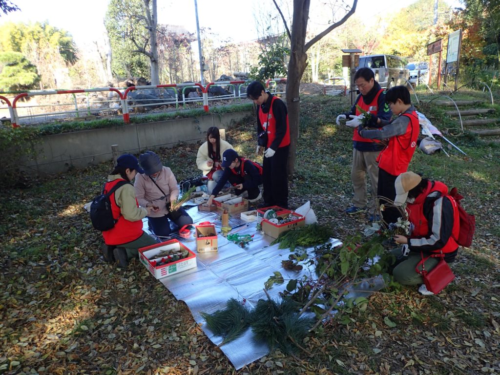 リース作り(みんなの広場)12:00 昼食(トラスト東屋)13:00 リース飾り付け+竹割り体験&竹の鉛筆立てづくり 14:20 片付け 14:40 集合写真撮影 14:45 閉会